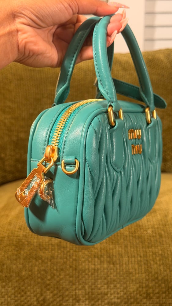 Teal Matelassé leather bag